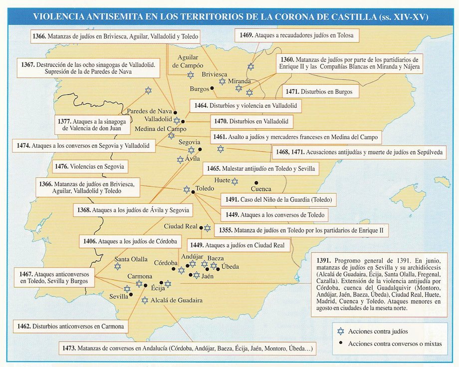 Mapa de los pogromos de los siglos XIV y XV en la península Ibérica